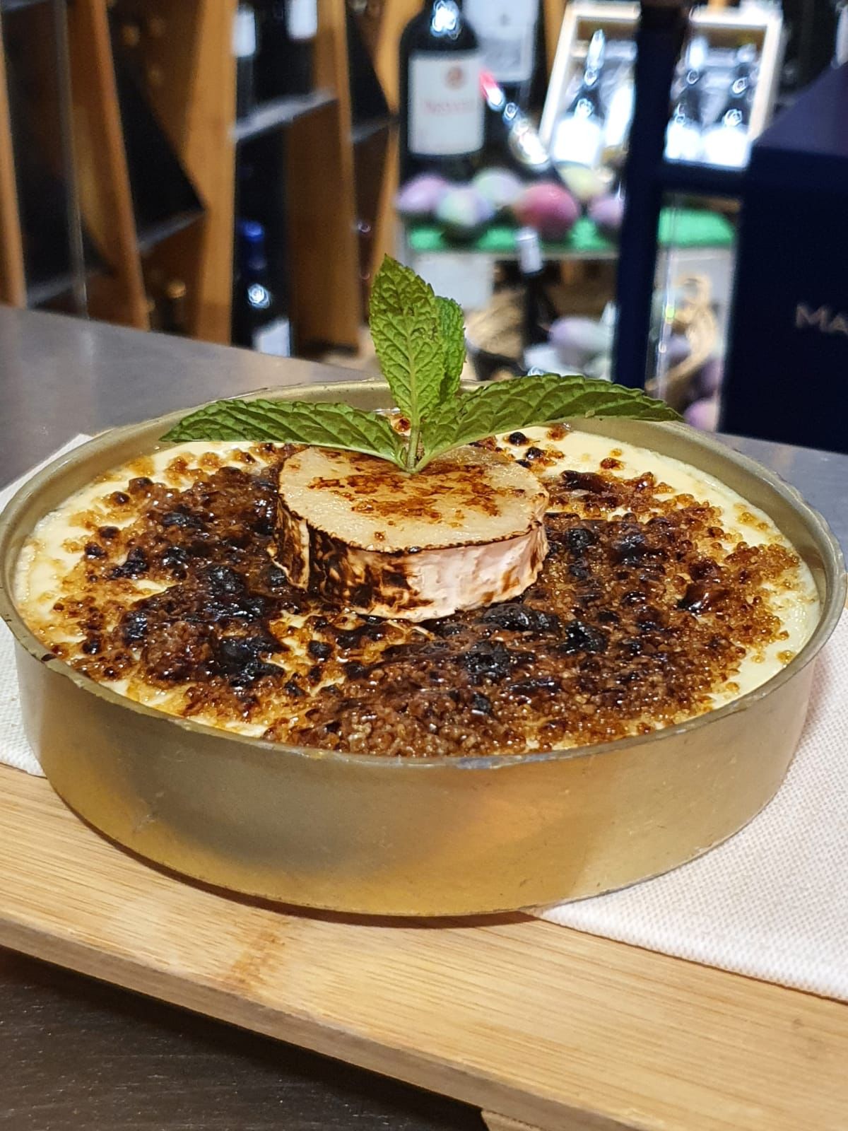 CREMA CATALANA DE QUESO DE CABRA RÓNDEÑO; Hacer una crema catalana base aparte fundir por un litro de crema catalana 400 grs de queso de cabra fundir con algo de leche y añadir a la crema. Servir y quemar acompañando con un medallón de quedo cabra y un poco de mermelada de mango de la Axarquía .